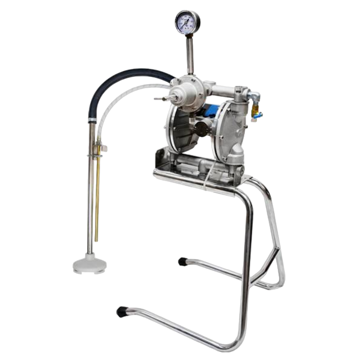 Fornecida com regulador de pressão, pescador e suporte, essa versão permite instalação rápida e operação imediata, reduzindo tempo de setup e facilitando a integração em sistemas de pintura industrial.